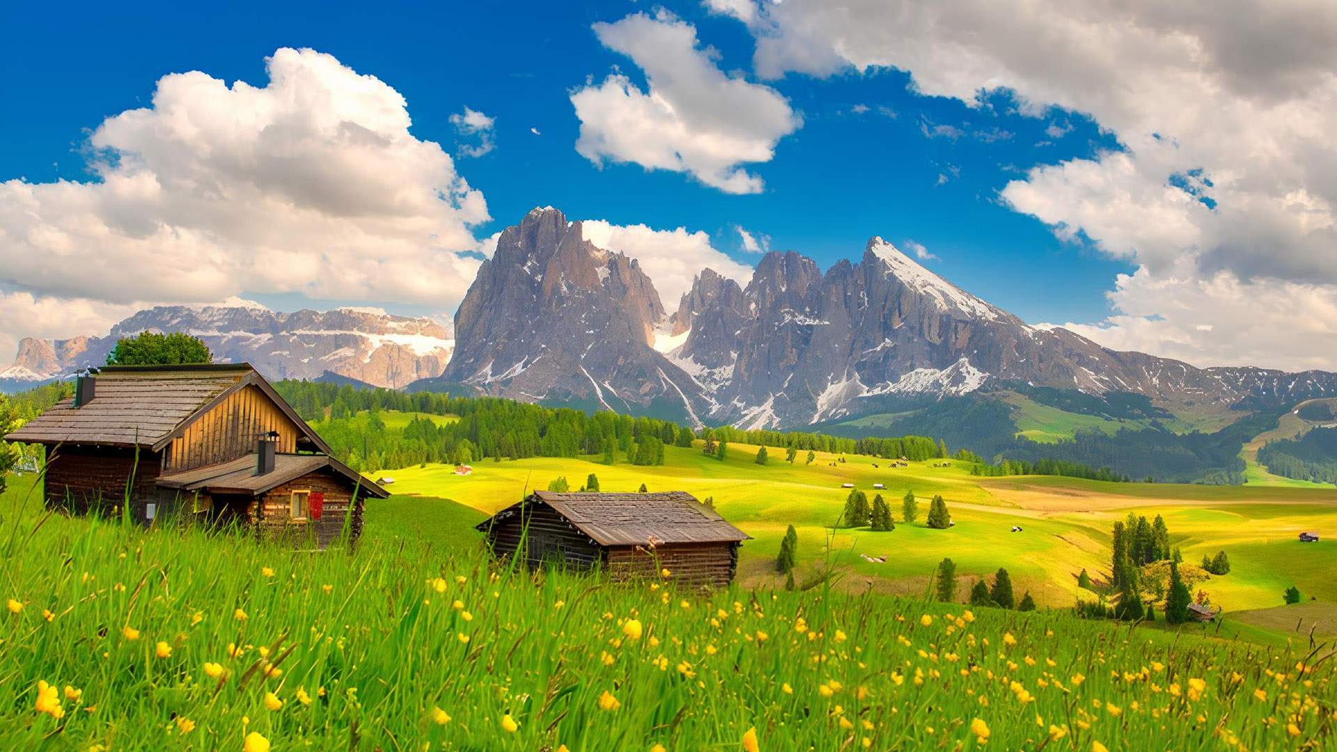 義大利北部多洛米堤山脈(又名白雲石山),為阿爾卑斯的一部分,遠古珊瑚礁經地殼隆起與冰河雕琢,形成今日峻峭奇峰。白雲岩壁與翠綠山谷對比鮮明,被譽為世界最美山群,並列入世界自然遺產。