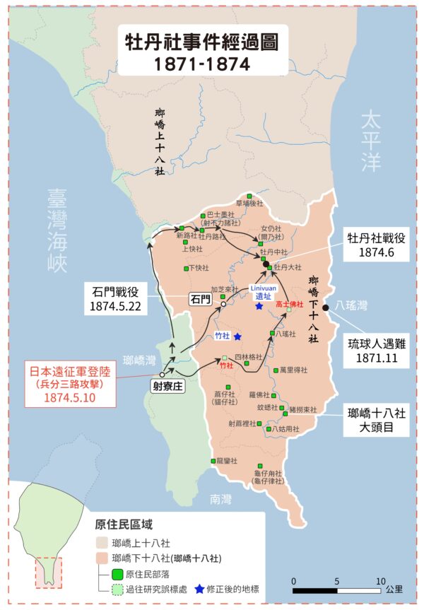 西元一八六七年美國的商船羅發號在臺灣因船難者誤闖瑯嶠十八社的領土,被視為侵略者,依當地習慣法將美籍船長等13人處決,船難生還者逃往鳳山求救,被清廷官員以生番/熟番的概念影響下,認為該地為生番控制的區域,進而導致美國駐廈門領事李仙得來台處理,在英國商人必麒麟引路之下,美國軍艦攻擊瑯嶠十八社,在原住民的伏擊之下,遠征軍指揮官麥肯齊戰死,美軍撤退,美國政府態度轉趨強硬。
