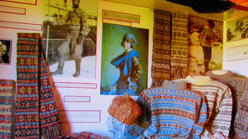 費爾島最為人津津樂道的還有其獨特的針織技法,風靡全球的費爾島毛衣(Fair Isle Sweater)起源18世紀,當地漁民妻子會為丈夫編織多色帽子抵禦嚴寒,鮮豔的色彩也方便海上辨識。通常使用兩色羊毛線圓形編織,圖案涵蓋幾何與自然元素,展現島民與自然連結。1851年藉由倫敦萬國博覽會使此技法廣為人知,至今仍可在島上見到或買到這些精湛的手編藝品。