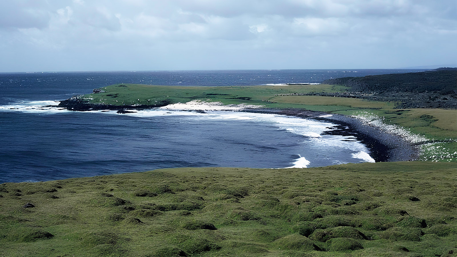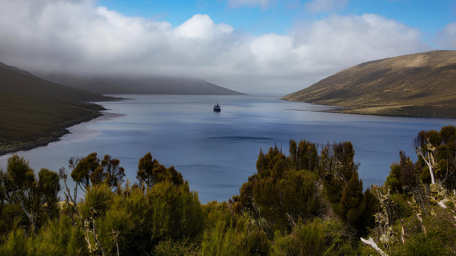 位於亞南極坎貝爾島東側,是一處狹長而深邃的天然海灣。港灣地形受周圍山丘與海岸保護,海況相對平靜,因此偶爾成為南露脊鯨的重要避風與活動海域。每逢繁殖季,母鯨有時會進入此處生產並照顧幼鯨,使這片寧靜港灣成為觀察大型海洋哺乳動物的珍貴地點。