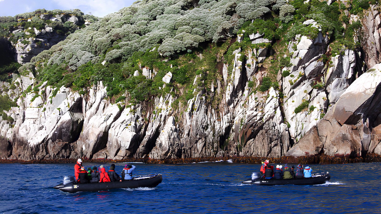 在避風的海灣裡,可以看到當地特有的史奈爾斯冠企鵝、史奈爾斯島山雀和蕨鳥。