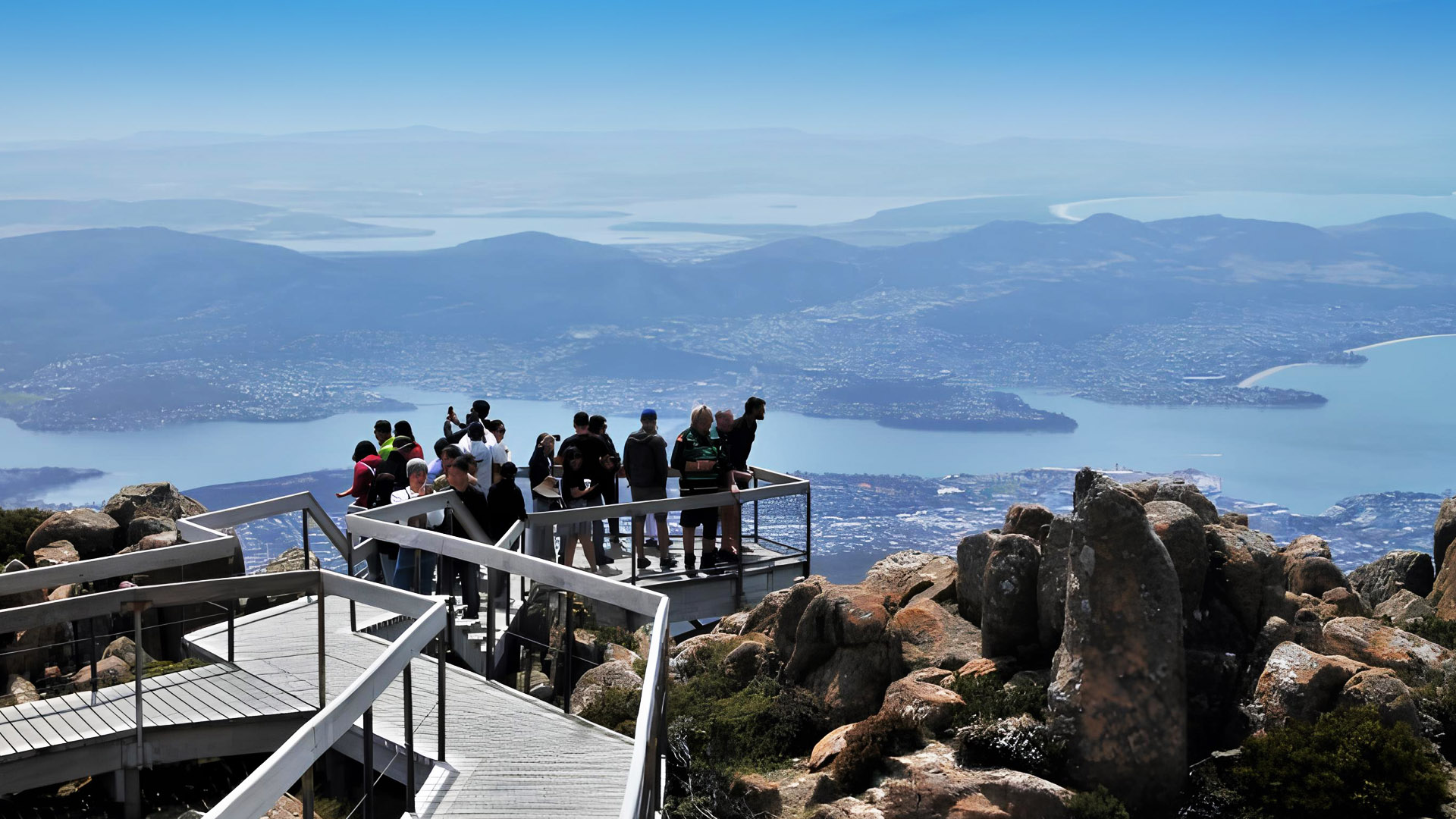 荷伯特(Hobart)外海的「布魯尼島(Bruny Island)」可說是最推薦的景點之一,布魯尼島分為北島和南島,兩島間有條狹長的沙質地岬連接,島嶼的環境非常自然,不僅幾乎沒有柏油道路,還有像是南布魯尼國家公園(South Bruny National Park)的保護區,能看到許多塔斯特有的動物和美景.The Neck 自然保護區登上觀景台,俯瞰布魯尼島北島與南島之間的壯麗海峽。