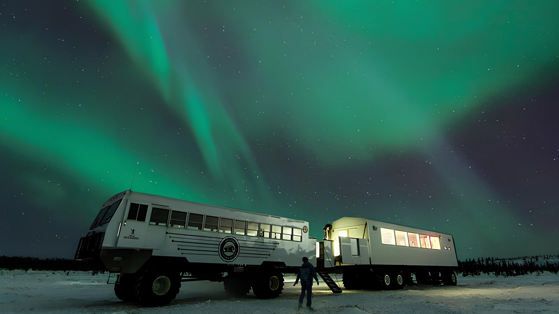 來到加拿大北方小鎮邱吉爾,最令人期待的莫過於搭乘「北極熊極地探險車」——那輛擁有巨型輪胎、專為冰雪地形打造的觀賞巴士。車內設施應有盡有,不僅有廁所、暖爐與舒適的沙發座椅,還提供精緻的下午茶與糕點。透過寬大的玻璃窗,我們能在溫暖的車廂裡安全又愜意地欣賞北極熊的身影。極地奇遇4部曲:穿越陸海空,震撼感受北極熊的極地探險之旅!