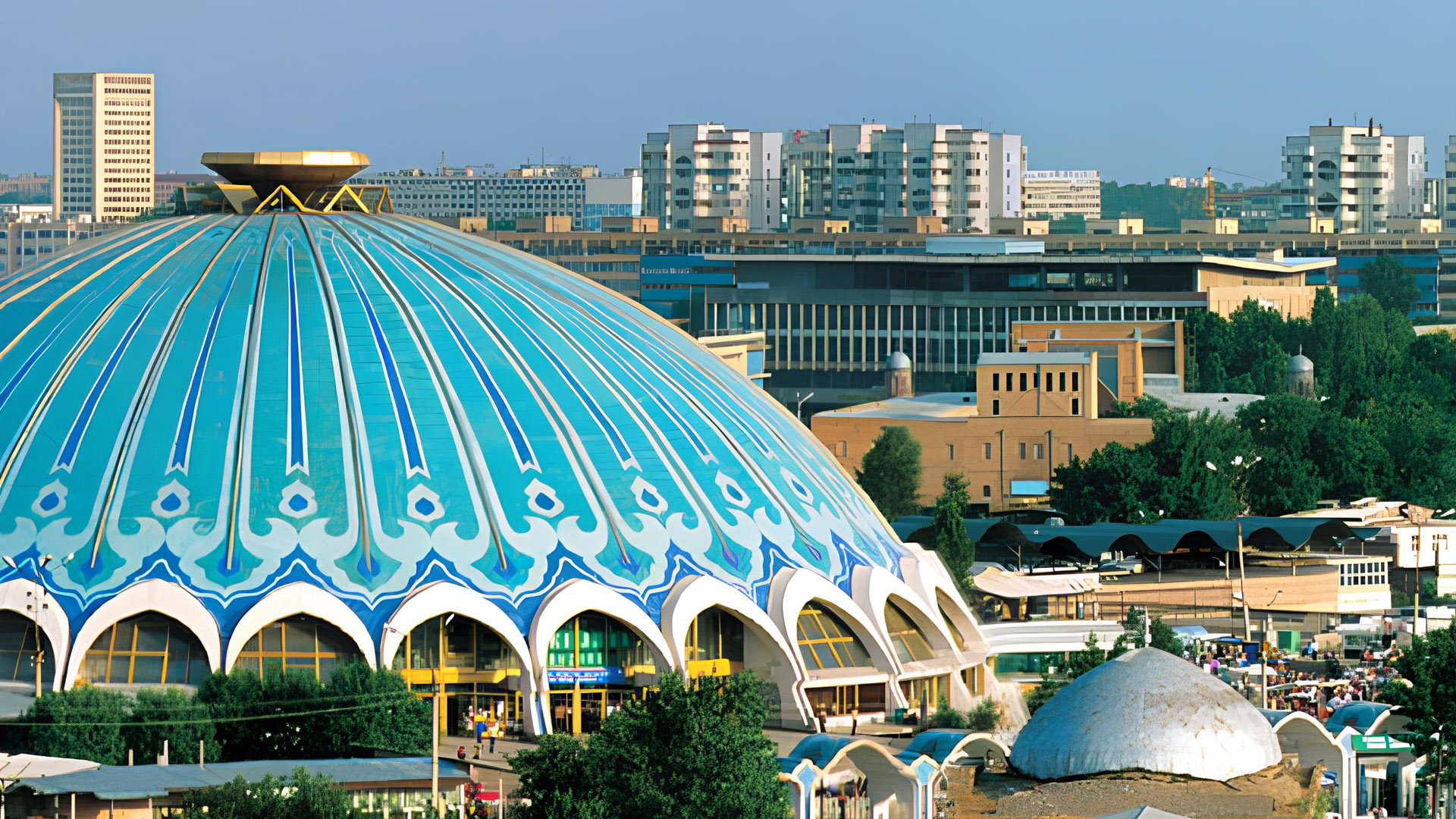 「受難者紀念碑」。這座帶有天藍色穹頂的露天建築,旨在緬懷蘇聯時期遭迫害的烏茲別克英靈。精緻的噴泉與綠意交織成肅穆祥和的氣氛。它不只是建築,更是記錄民族傷痛與爭取獨立自由的歷史見證。