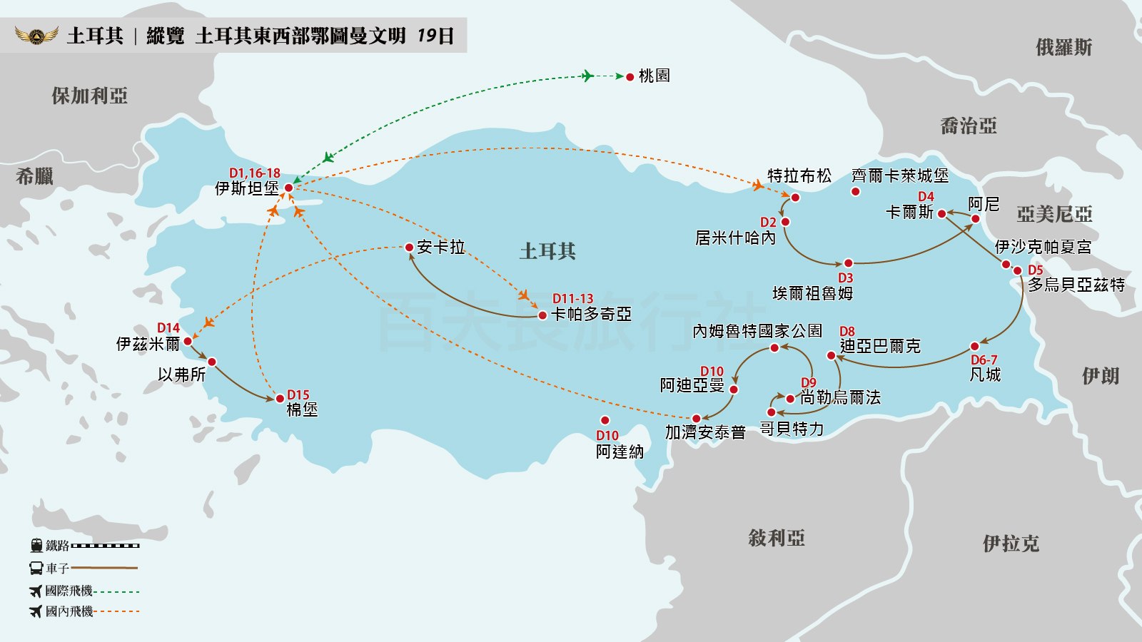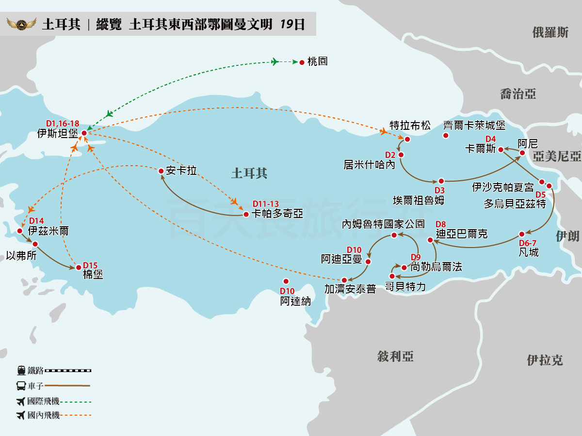 安排搭乘國內航班,讓您以最輕鬆舒適的態度暢遊土耳其愛琴海與地中海,盡情享受浪漫旅途。