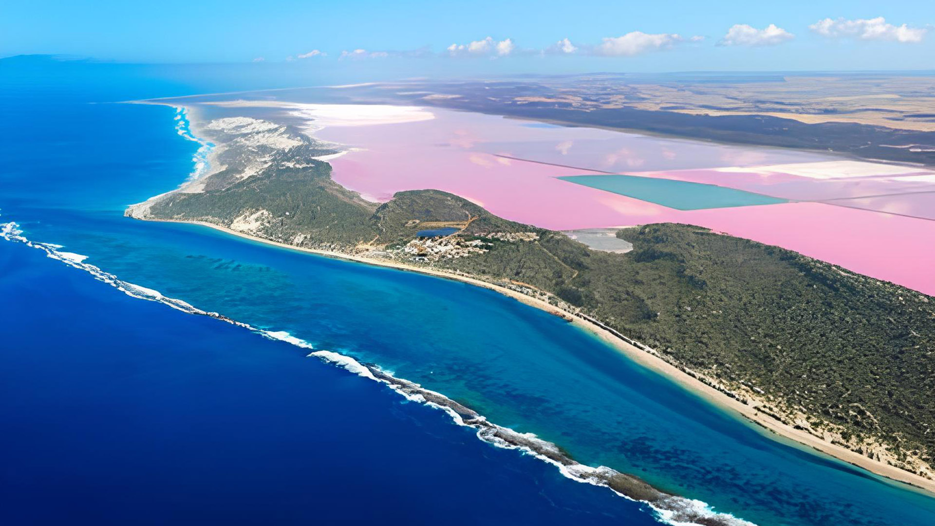 粉紅湖之所以呈粉色是因湖泊含有大量鹽分,滋生大量【嗜鹽藻類】,藻類在繁殖過程產生大量【β-胡蘿蔔素】,讓湖水泛出一層淡淡粉色。粉紅湖曾在2013年登上《國家地理雜誌》封面,蘭蔻口紅廣告也曾在這取景。這汪浪漫粉紅湖輕易俘獲過客的芳心,被稱為"上帝遺落的小玫瑰"。